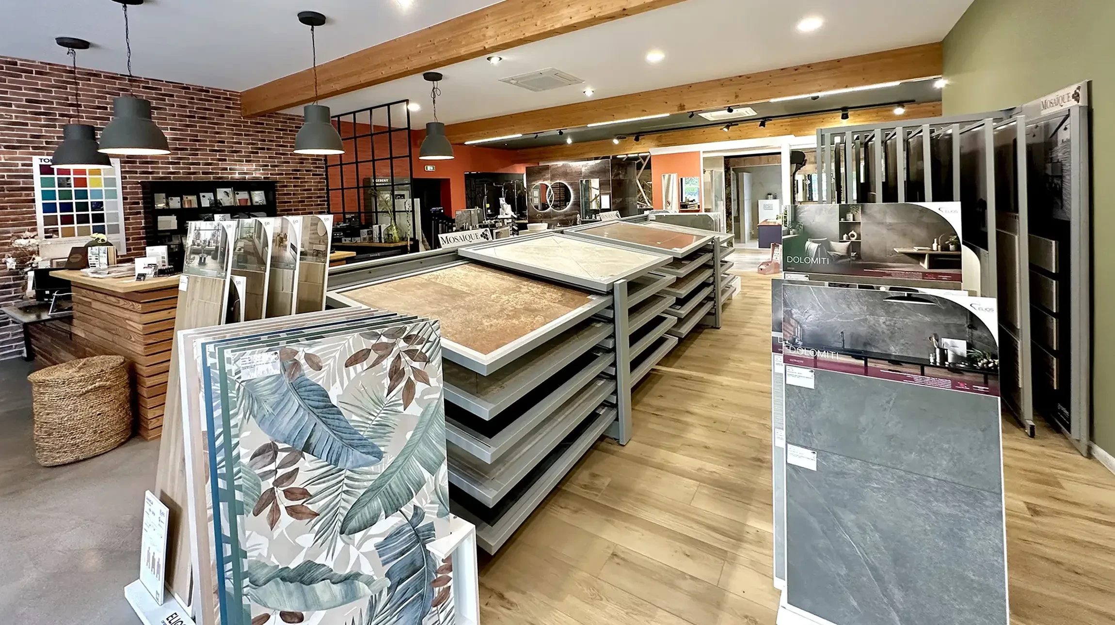 Découvrez notre espace d'exposition Mosaïque où plus de 10 boxes de salles de bains vous accueillent en grandeur réelle. Notre large gamme de carrelages intérieurs et sanitaires design vous permet de créer des espaces qui vous ressemblent vraiment. À vos côtés, nos conseillers vous guident vers les matériaux les plus adaptés à chaque pièce de votre habitation. L'alliance entre élégance et performance technique vous garantit un résultat optimal.